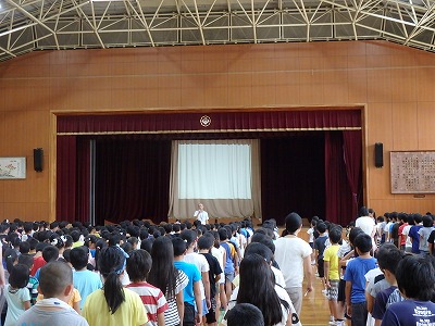 朝会の後には,児童集会として栽培委員会と放送委員会から活動内容などのお話がありました。どちらもクイズを使っての発表で工夫されていて,みんなで楽しくお話を聞くことができました。