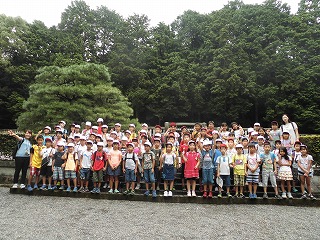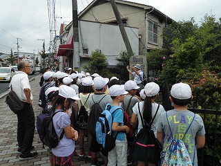 今日は,総合的な学習の時間「大好き鏡山」の学習で,鏡山次郎先生とフィールドワークに出かけました。今日は,天智天皇陵とすずめ坂,義経の腰掛け石を巡りました。