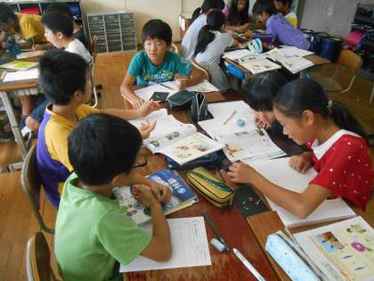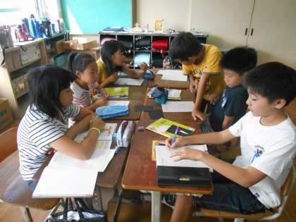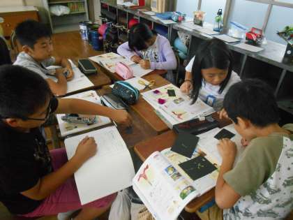 理科の時間にアサガオのめしべ・おしべの観察をしました。