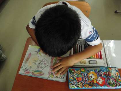挿絵を見ずにお話を聞いて,好きな場面を想像して絵に描くというものです。