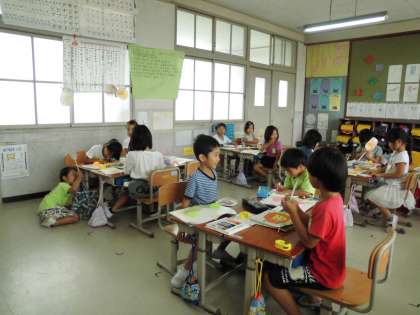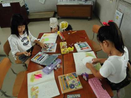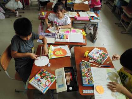 色を塗ったり,割りばしに張り付けたりしながら,楽しそうに作業していました。