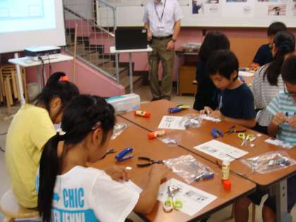 omronの会社では,どのような製品が作られているのか,また,その製品は私たちの生活の中のどんな場面で使われているのかなどを学習した後,製品の作り方の説明を聞き一人,ひとりが製品を作りました。