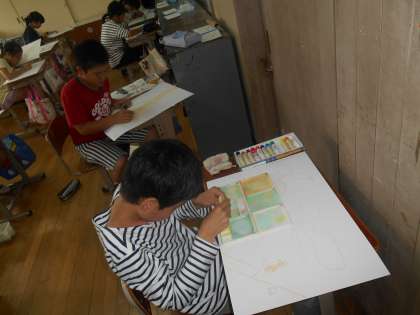 下絵ができた子から着色を始めています。