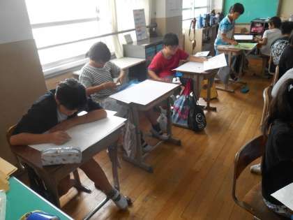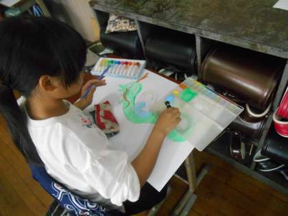 子どもたちの想像した世界をかくため,構図などもさまざまで,今から完成が楽しみです。