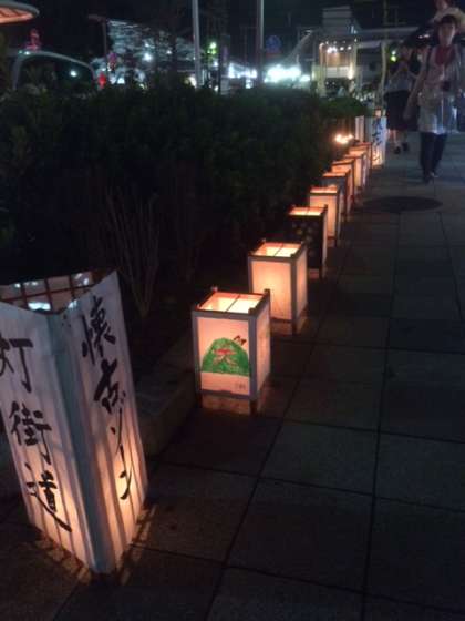 本校の子どもたちが5月に描いたあんどんもその一画に並び,かわいい絵がろうそくに照らし出されて,見る人の心を癒していました。