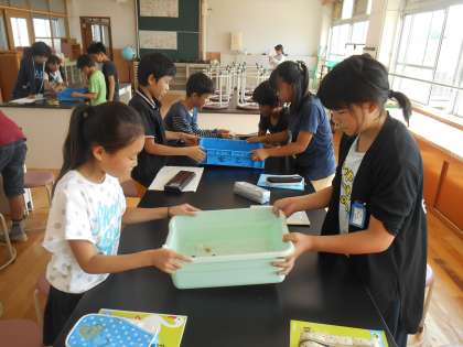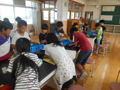 サイコロ大の石膏の準備には1組のお友だちの活躍がありました。