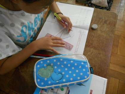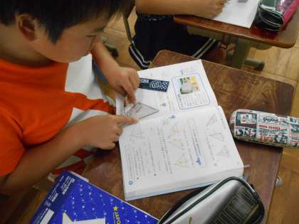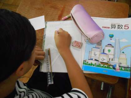 四角形の面積を,三角形の面積の公式を使って求めました。