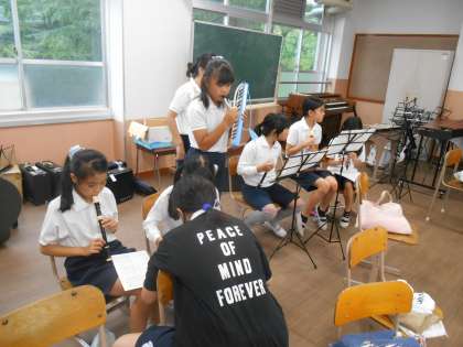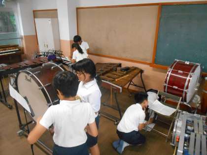 キリマンジャロの演奏に向けて音楽室で楽器の練習をしています。