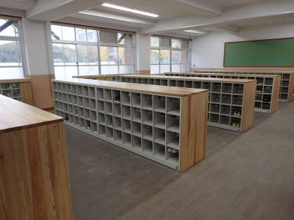 昇降口に並べてあるみんなのくつ箱が,この休日中に大変身しました。