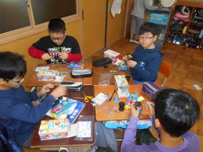 自動車か扇風機か選択しておもちゃ作りを楽しみました。