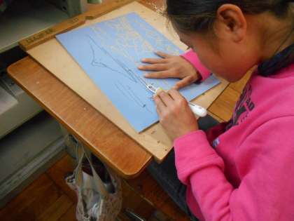 下絵に色をつけた子からお試し刷りに挑戦です。