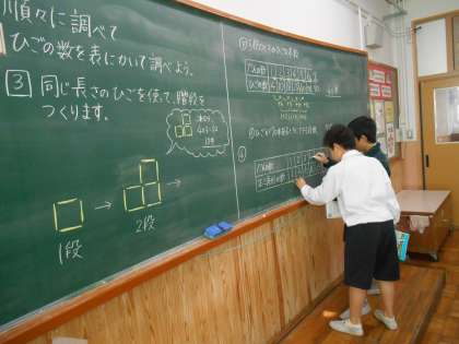 単純に比例して増えるのではなく,一定の決まりを自分で考えながら解くので,なかなか難しい問題でした。