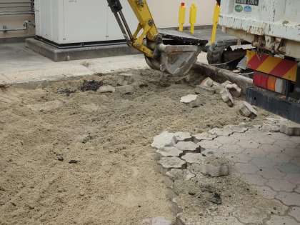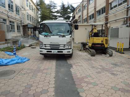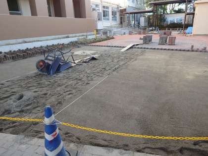 先週から今週にかけては,中庭のインターロッキングブロックの工事が進行中です。既存のものを撤去し,新たに設置しなおしてもらっています。