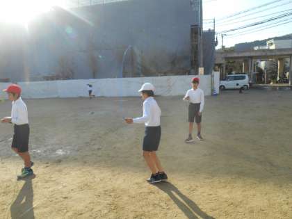 なわとびの時間に1分間連続前跳びに挑戦しました。