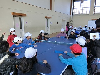 子どもたちは交流を楽しみながら,卓球バレーやポートボールに取り組みました。