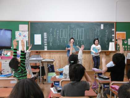 事前にペアで作成した,学校にあるものをについての問題をみんなの前で発表していきます。