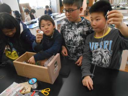 ビー玉や鉄球,スチロール球など,セロハンテープで固定して動かしました。