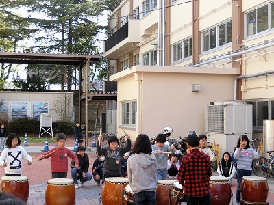 今日の中間休み・昼休みには,和太鼓部の演奏発表会がありました。