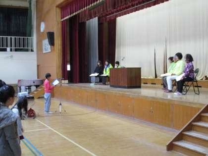 毎日子どもたちの安全を守ってくださっている見守り隊の方に,5年生の代表として,感謝の言葉を発表してくれました。