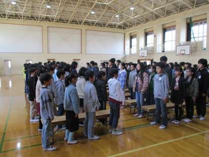 音楽室で学年音楽をした後,体育館で練習中の6年生に合流しました。