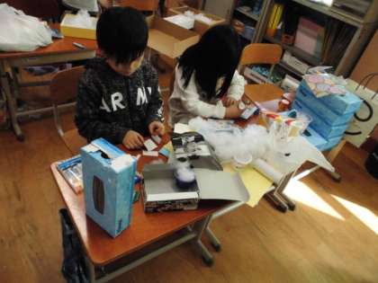 今日の図工では、「ともだちハウス」に取り組みました。