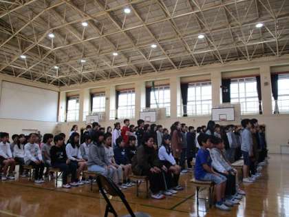 6年生の隣に座っている5年生の子どもたちも,1年後には卒業する立場になります。