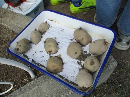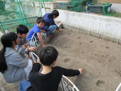 6年生での学習のために,じゃがいもを植えました。