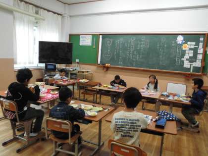 たいよう学級で給食を食べるのは,3回目です。みんな,食べる時間を大切にしています。お話をせず,いっしょうけんめい食べています。少しずつたくさん食べることができる人も増えてきました!