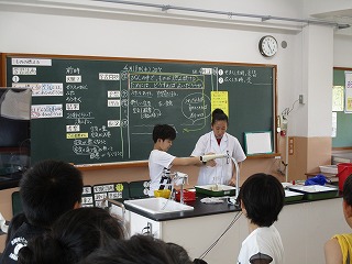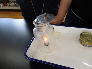 ろうそくが燃え続けるように工夫して実験を行いました。