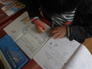 分度器の使い方は慣れるまで大変ですが,頑張っています。