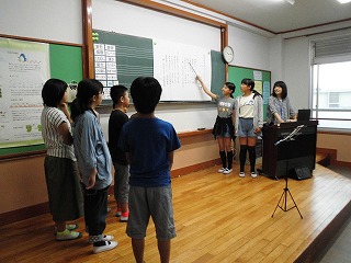自分たちが先生となって1年生に校歌を教えるため,練習を始めました。