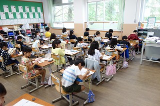 3年生で初めての国語のテストに取り組んでいます。日ごろの学習の成果を発揮するために,みんなが真剣に取り組んでいました。