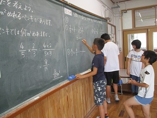 分母どうし,分子どうしをそれぞれかけることを意識して問題に挑戦しました。
