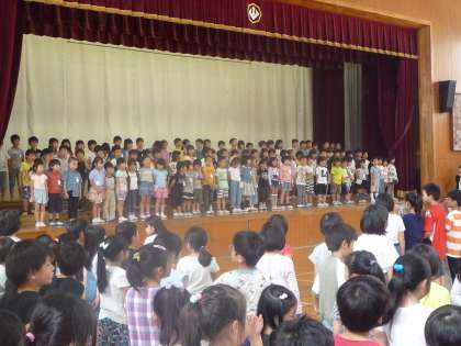 待ちに待った「一年生を迎える会」当日。1年生はこれまで練習してきた言葉や歌を,大きな声で立派に発表することができました。2年生から6年生の発表を見て,とてもうれしかった様子で,「たのしかったね。」「歌声がきれいだったね。」と子どもたちの声がたくさん聞こえてきました。鏡山小のみんなに迎えてもらって,とてもうれしい様子でした。