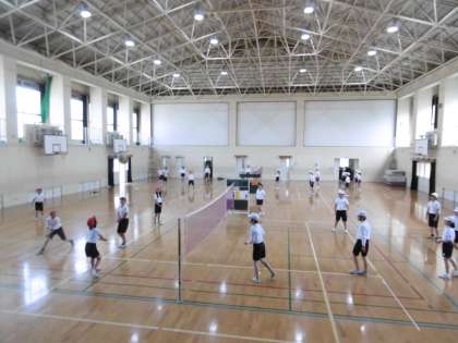 体育の時間にソフトバレーボールを行っています。