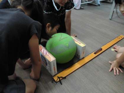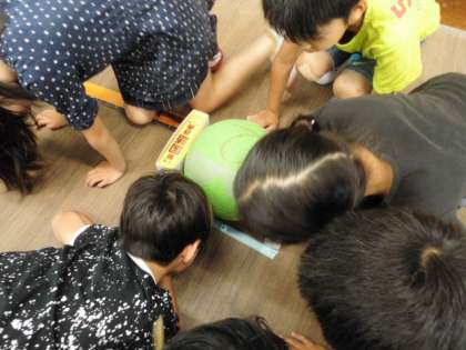 球の直径をはかる方法を考え,クラスボールの直径をはかりました。