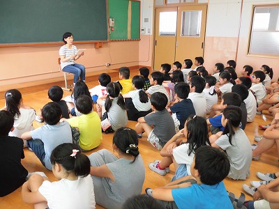 今日は4年生で特別,読み聞かせをしてくださいました。