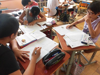 鏡山小学校ならではの施設や行事について,丁寧にまとめているところです。