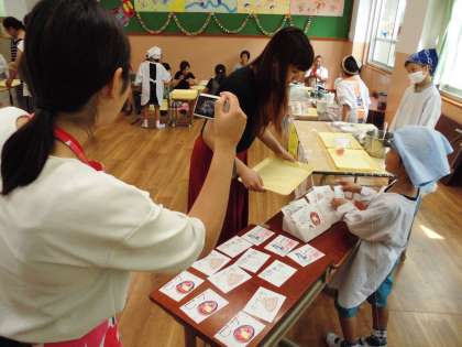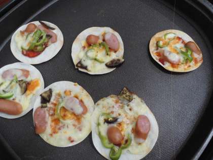 「ミニピザは,ぎょうざの皮なのね!」と驚くお客さん。