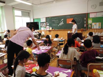 図画工作科の「はさみのあーと」では、子どもたちが自由にはさみを使って紙を切ります。じぐざぐに、なみなみに、くるくるに・・・自由に、しかし工夫して切った後に、何かに見立てて作品を作っていきます。楽しかったね。