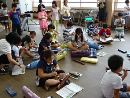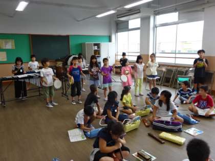 3年生は音楽科の学習で「ゆかいな木きん」の合奏をしました。役割分担して音を合わせていきます。パート練習の成果か,少しずつ音が合わさるようになってきて,きれいな音が出ていました。