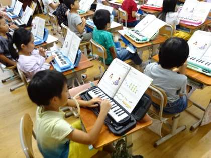 2年生は音楽の時間に鍵盤ハーモニカを使って自分で音楽を作りました。その中で,何の音で終わると曲が終わる感じがするのかを考えました。そして,最後の音が「ド」だと曲が終わる感じがするねとみんなで確認しました。これでみんなも作曲家になれるかな!?