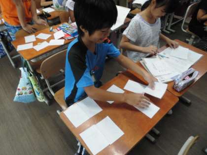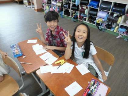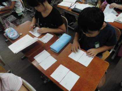 左側の「へん」,右側の「つくり」をバラバラで作り,机の上に並べて楽しみました。