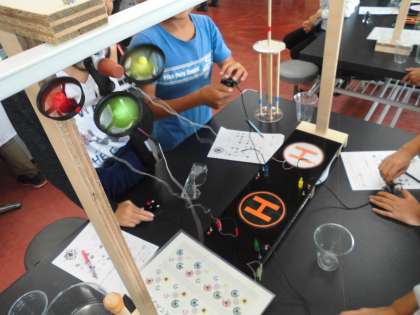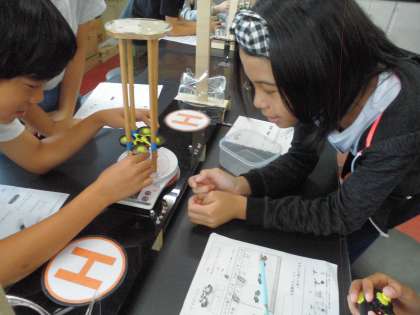 紙トンボのプロペラやホバーサッカーなどを観察し,空に浮くもの,飛ぶものを科学的にとらえたり,囲いや ひもでつないだ小型のドローンを操縦したりしながら,現在の科学技術を知り,未来のドローンについて考えてきました。
