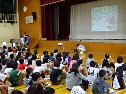 その後の児童集会では,掲示委員会からの活動紹介もありました。学校をきれいに彩るべく,いろんなところに掲示物を貼ってがんばってくれています!