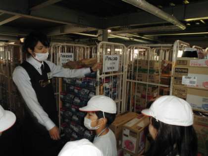 バックヤードにはお店に並べる前の商品がたくさんあり,お客さんの要望や売り場の在庫に合わせて並べることを教えてもらいました。