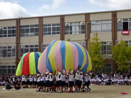 3年生と一緒にバルーンを楽しみました。みんなで協力してきれいなバルーンをつくり,多くの人たちに見せることができました。