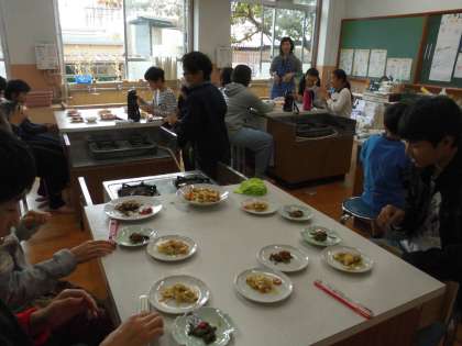 家庭科「まかせてね今日の食事」で,以前から考え準備してきた献立をもとに,調理を実施しました。