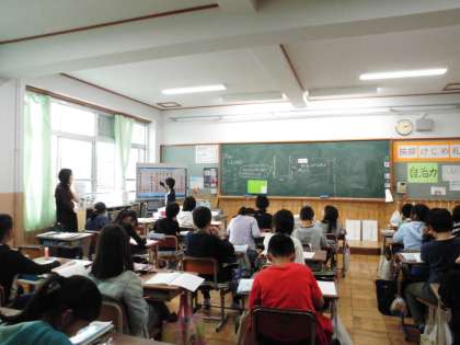 子どもたちは、人文字の中に、人が何人並ぶことができるか考えていました。