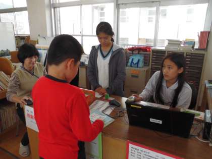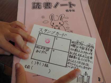 貸出コーナーでは,スタンプカードの配布が。11月7日〜19日の間に本を借りてスタンプを集めると,しおり作りができるようです。楽しい企画に,いちだんと図書館の利用者が増えそうです。